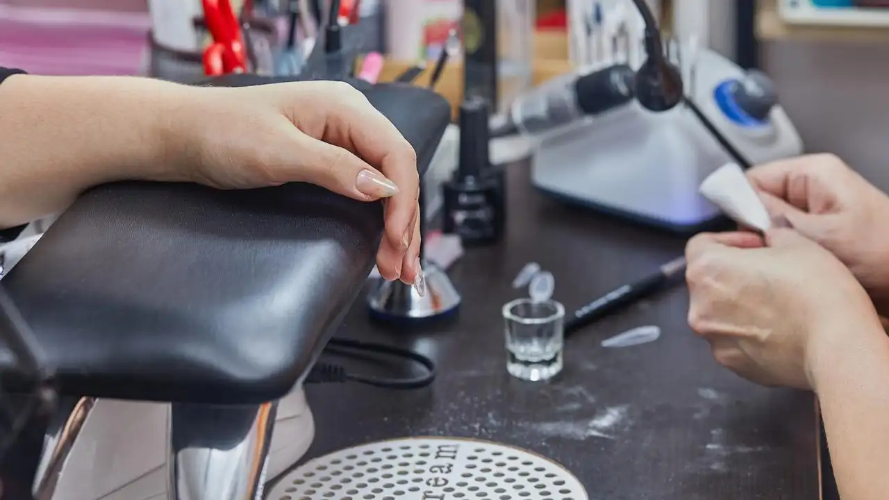 Tratamento cuidadoso de cutículas e unhas com perfeita preparação para revestimento.